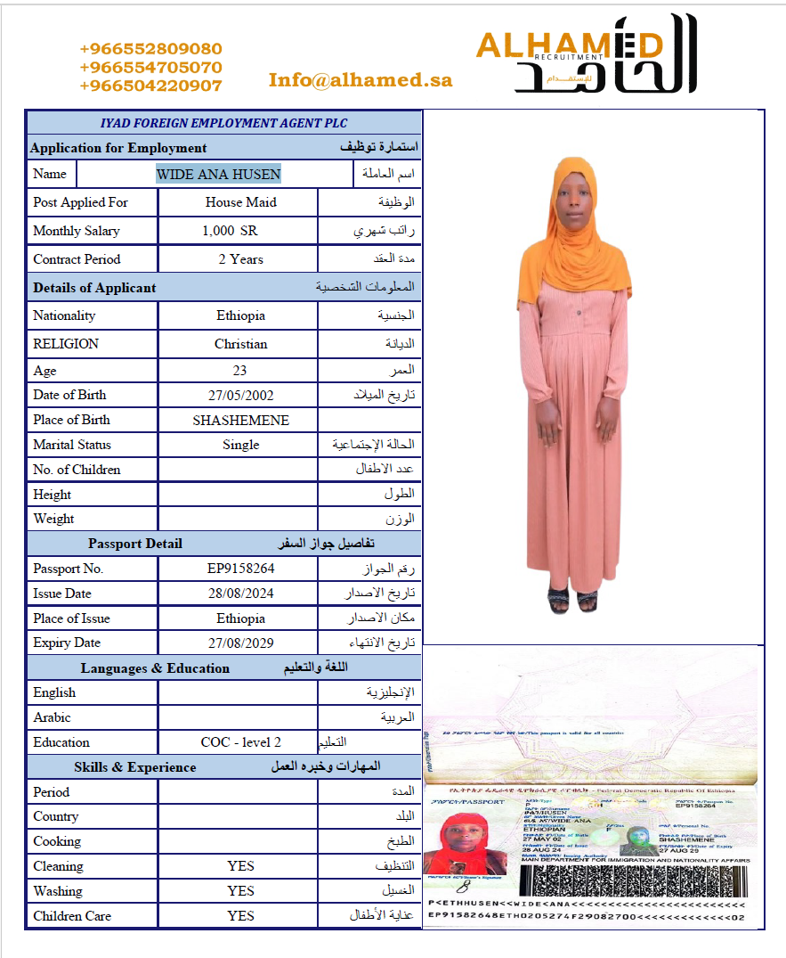 | المهنة: عاملة منزلية | |