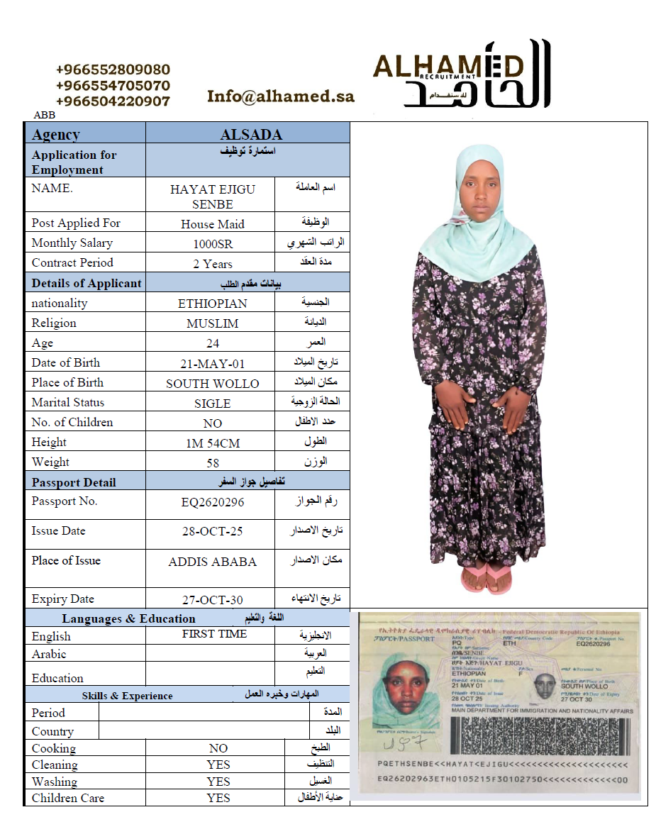 | المهنة: عاملة منزلية | |